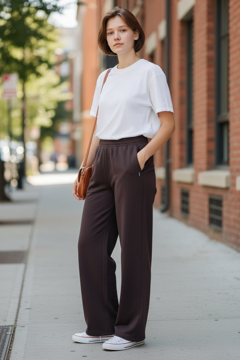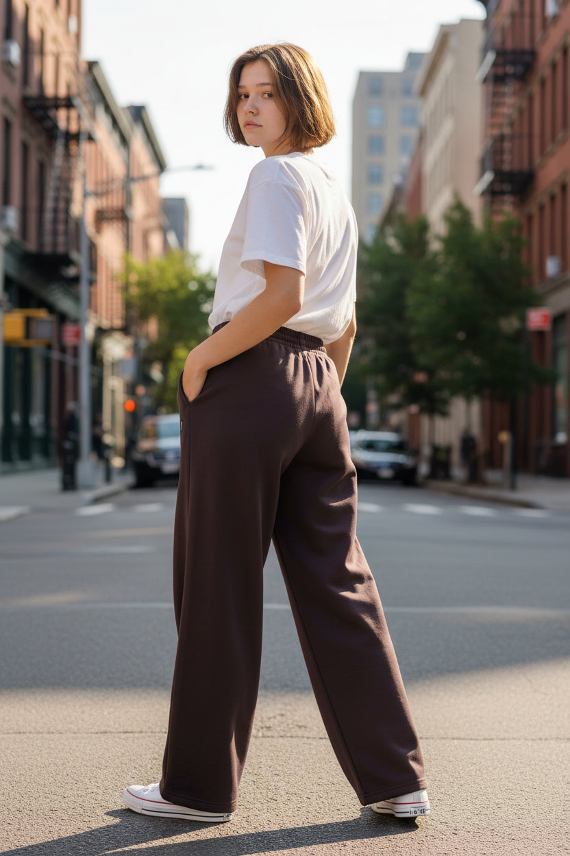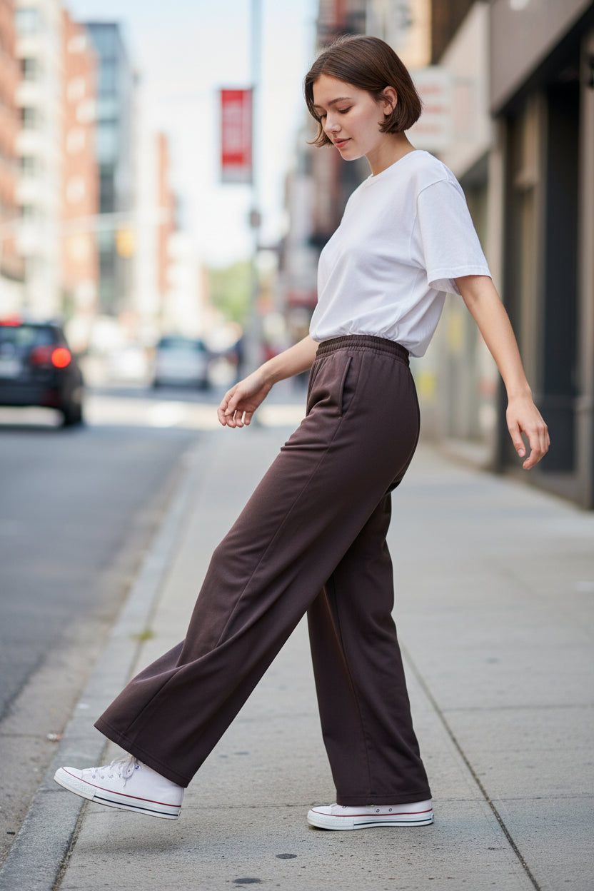 Su pretina ancha entrega ajuste cómodo y favorecedor, mientras su diseño amplio en pierna lo convierte en una prenda versátil para relajarte o salir con un look moderno y consciente.